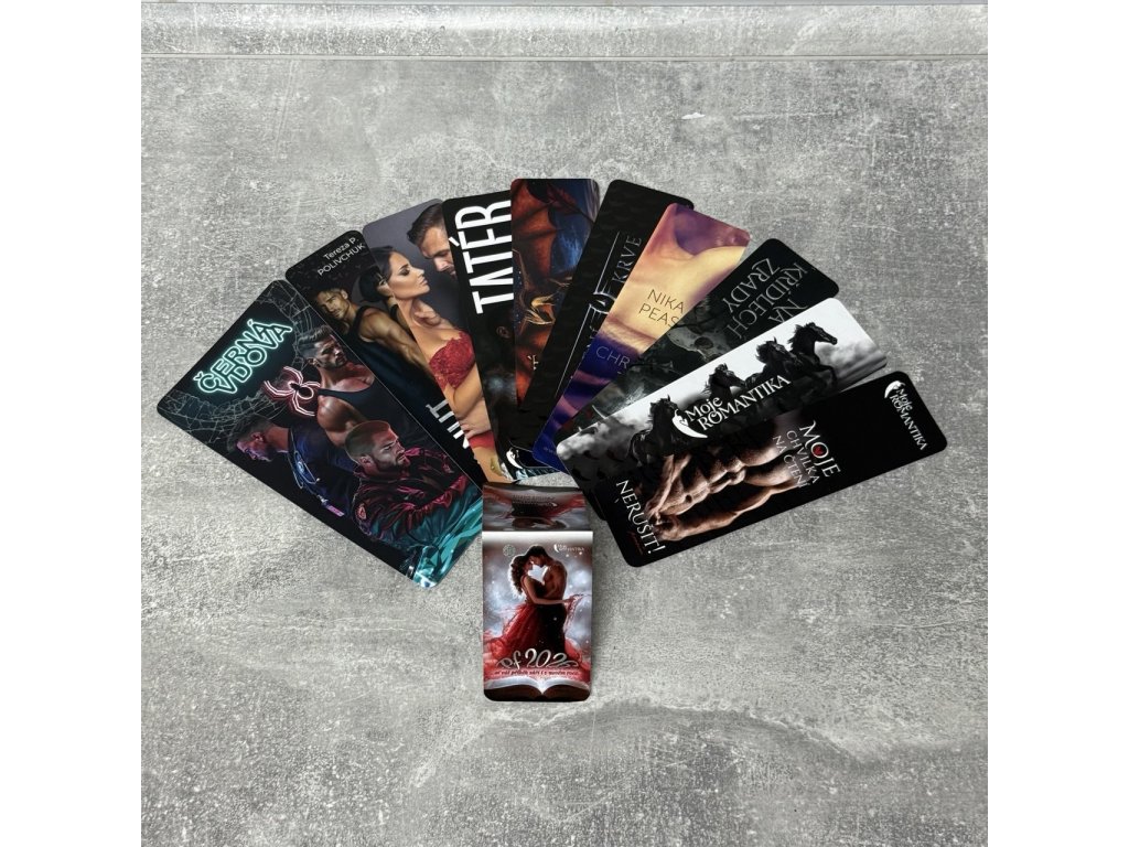 Záložky z knih jako Havraní dvůr, Černá vdova, Donuť mě cvičit, Tatér, Spatřil ji a mnoho dalších. Někdy i limitované a sběratelské motivy!