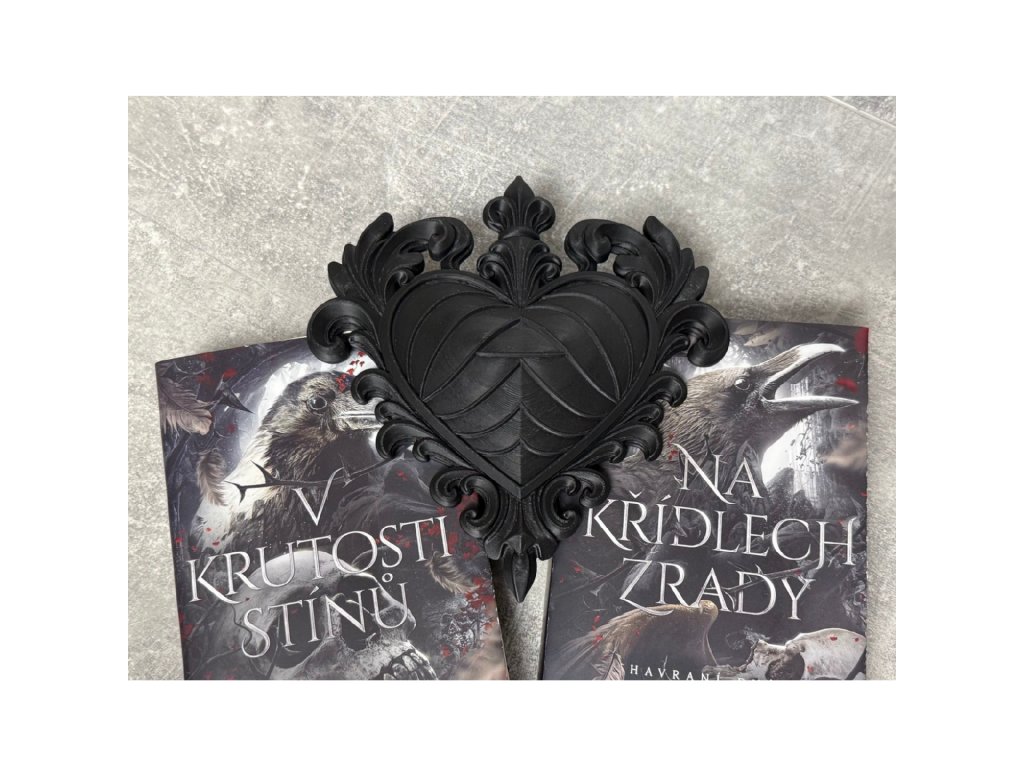 Matná černá, bohaté ornamenty a struktura připomínající peří vytvářejí dramatický gotický vzhled, který dokonale ladí ke knihám z temných fantasy světů. Nádherně zapadne k sériím jako Na křídlech zrady či V krutosti stínů, kde podtrhne magickou, šedo-červenou atmosféru příběhu.