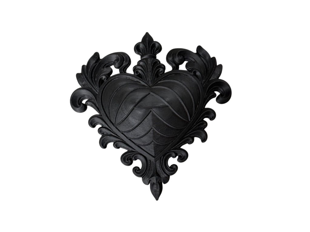 Přidejte do svého čtenářského koutku kousek temné elegance. Toto detailně propracované 3D srdce je univerzální dekorace – můžete ho položit mezi knihy jako výrazný prvek v knihovničce, nebo ho pověsit na zeď díky připravenému otvoru na zadní straně.