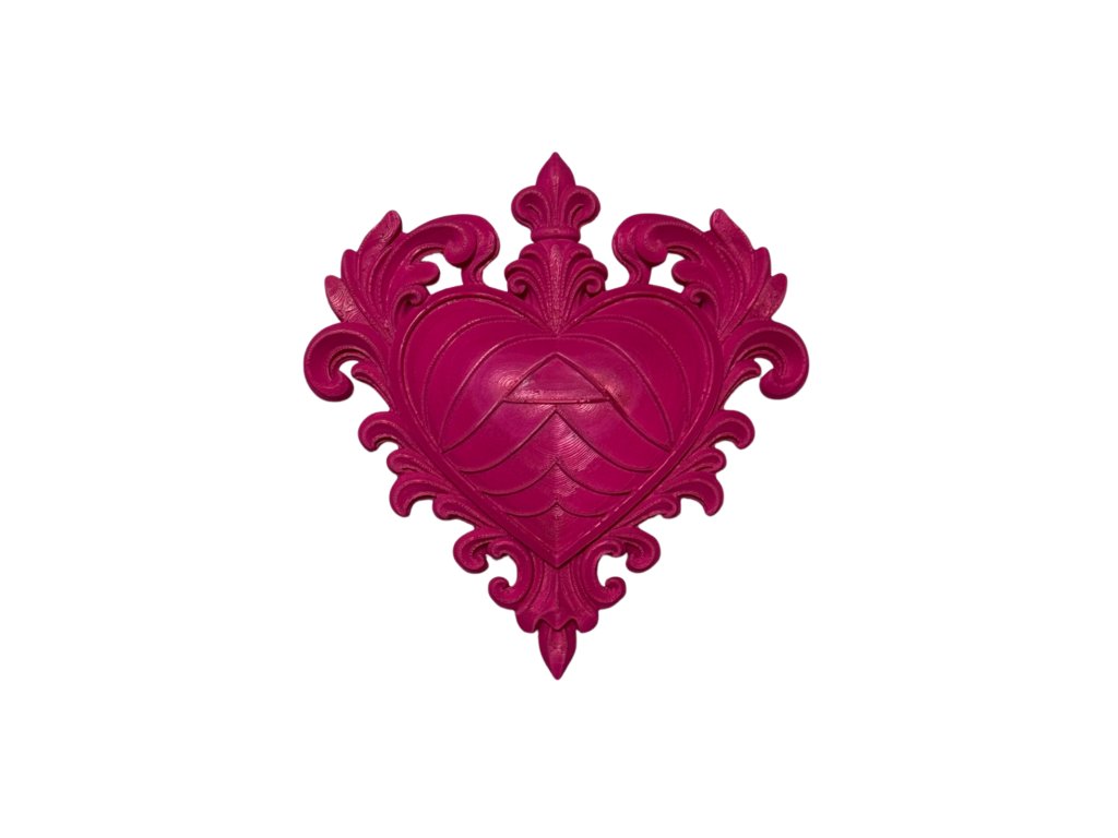 Přidejte do svého čtenářského koutku kousek temné elegance. Toto detailně propracované 3D srdce je univerzální dekorace – můžete ho položit mezi knihy jako výrazný prvek v knihovničce, nebo ho pověsit na zeď díky připravenému otvoru na zadní straně.