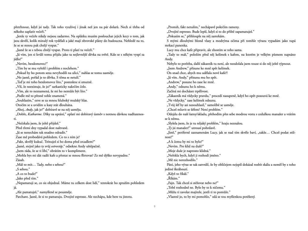 Kniha nebude pro každého, o to větší cenu pro mě má. Není předvídatelná, je netradiční a to i stylem jakým je napsána. Příjemné číst knihy od Katy Cooper, já bych romantické knihy jinak asi nepřečetla. Osobitý smysl pro humor a nepředvídatelnost jsou super.